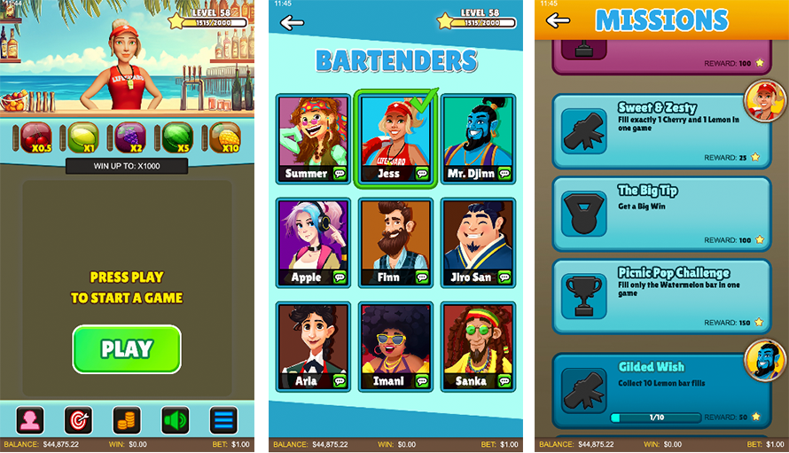 Keep playing, keep progressing, and unlock new bartenders - each bringing their own unique bonus feature and exciting win experience!